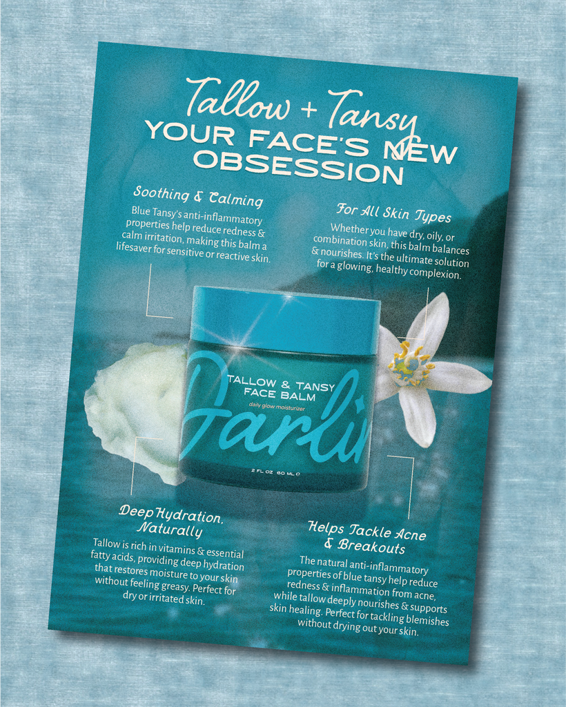 Tallow Face Balm | Natural Blue Tansy Skincare Moisturizer is backordered and will ship as soon as it is back in stock.