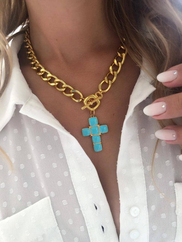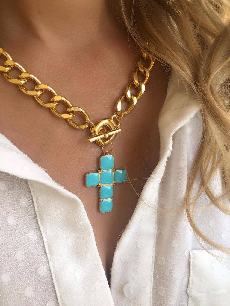 Gold Cross Necklace, Gold Chain, Cross Necklace is backordered and will ship as soon as it is back in stock.