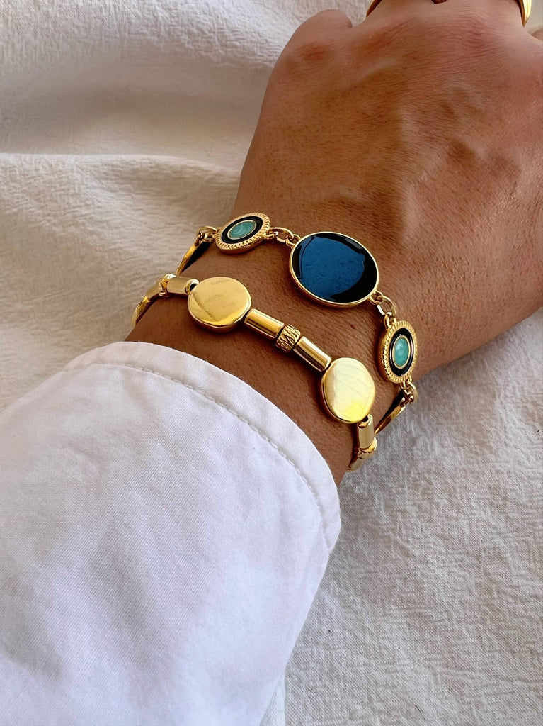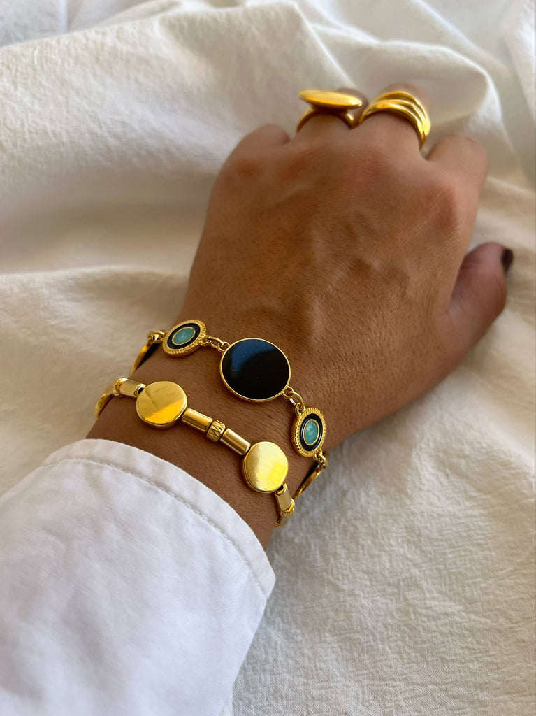 Gold Round Beaded Bracelet, Disc Beads Bracelet