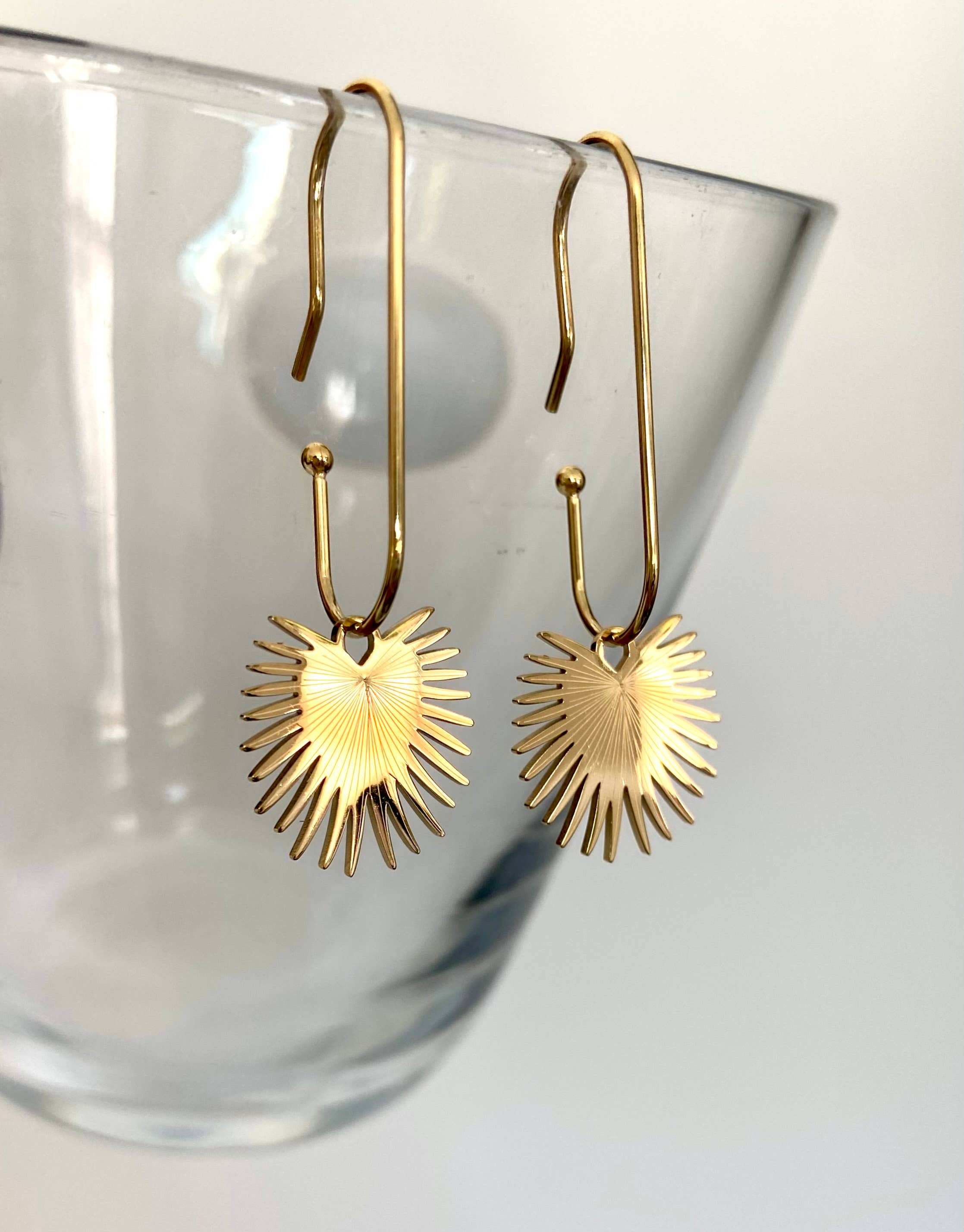 Be inspired by these minimalist earrings with their chic desert look. A delicate tassel, inspired by the shape of desert plants, sways gently on a simple ear wire. Let these earrings bring a touch of unique desert charm to your everyday style. Made of 14K gold plated stainless steel Height:2 inches