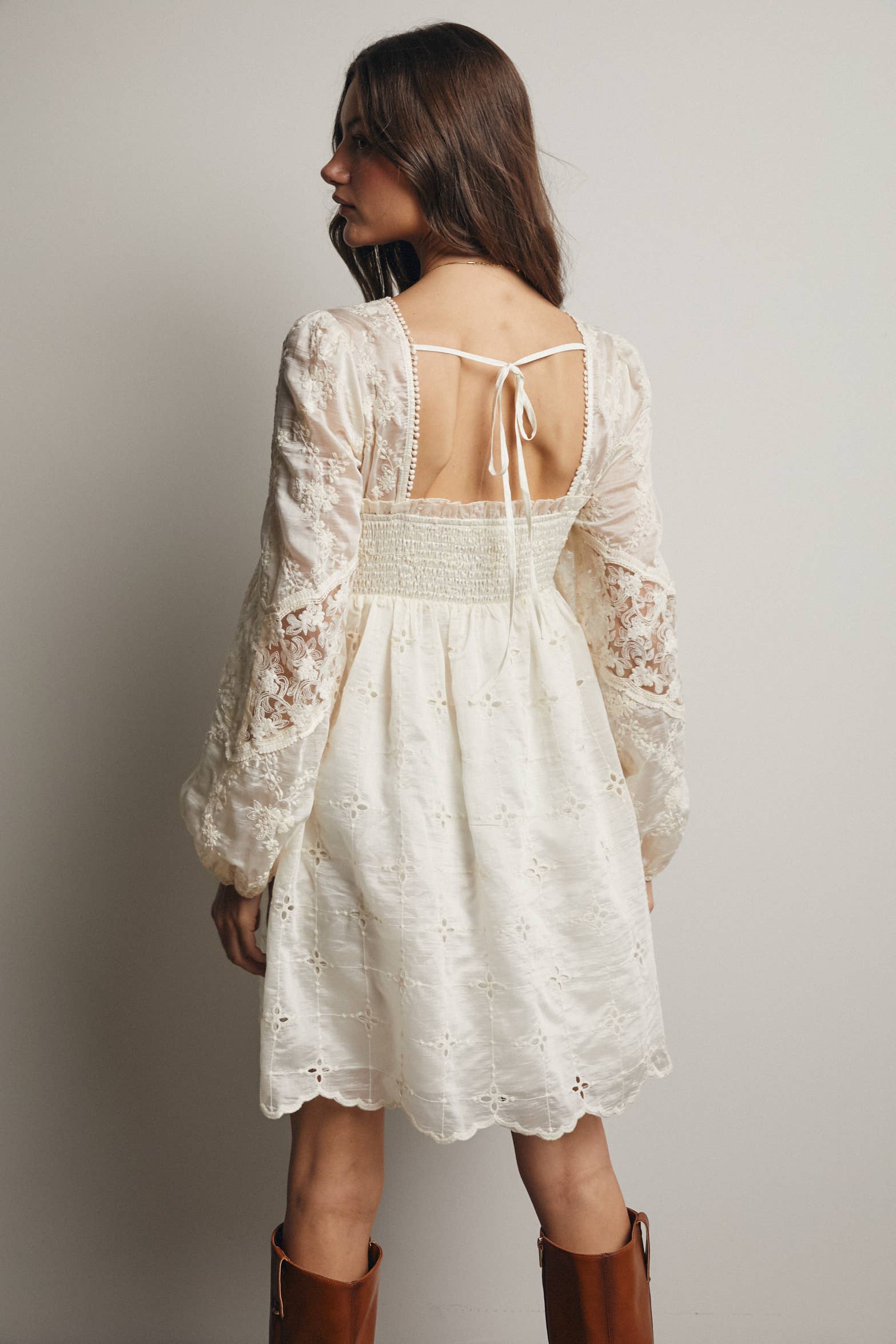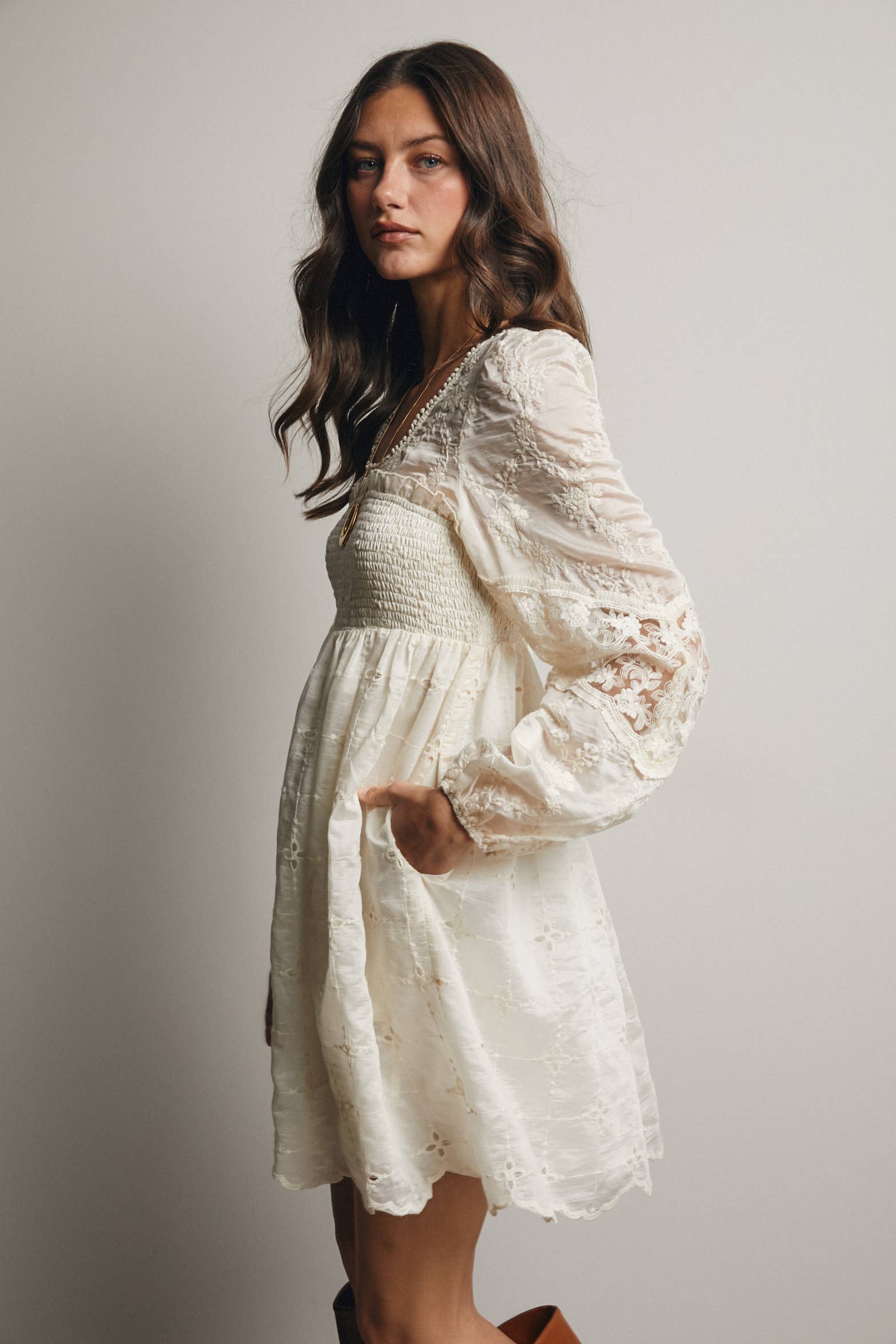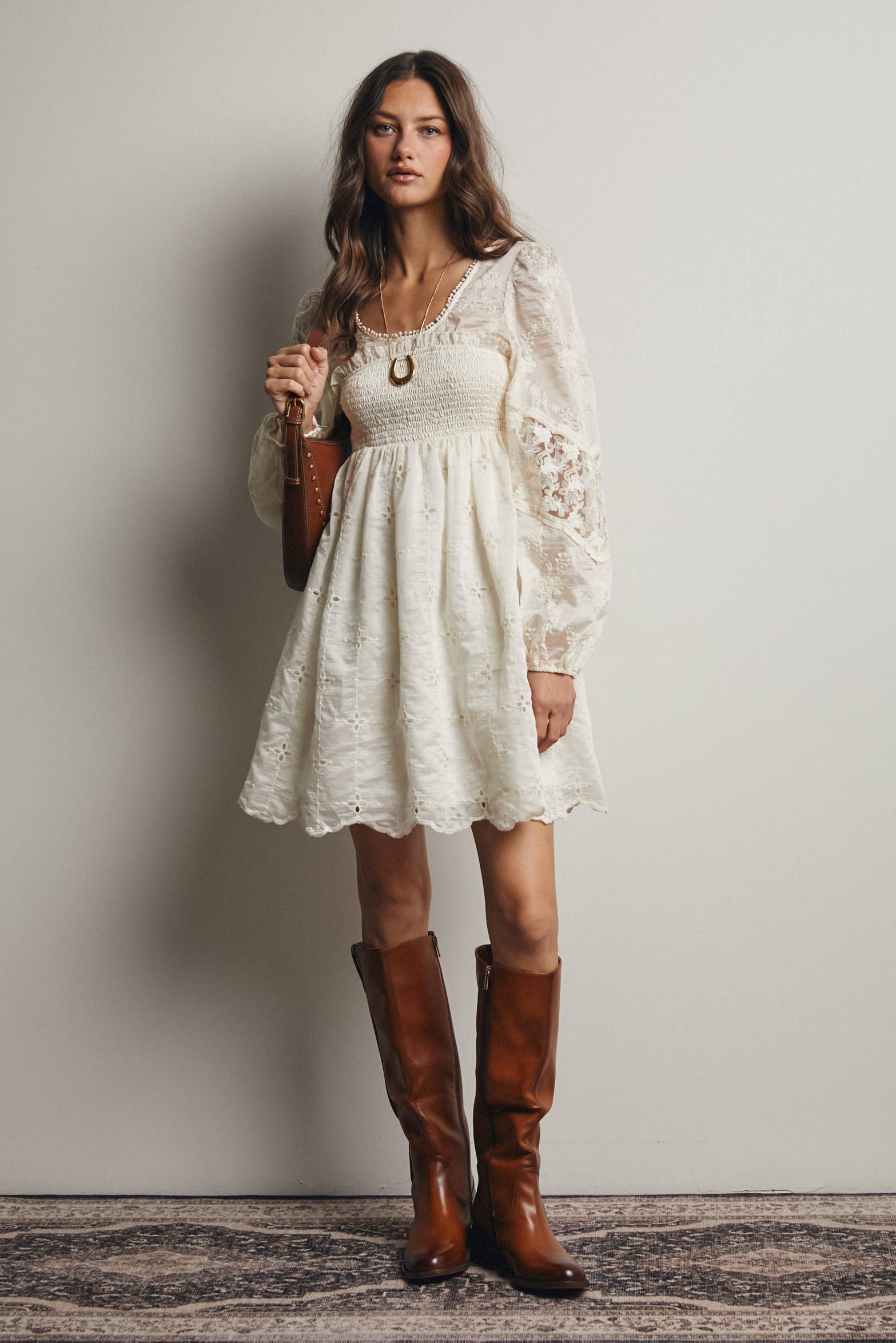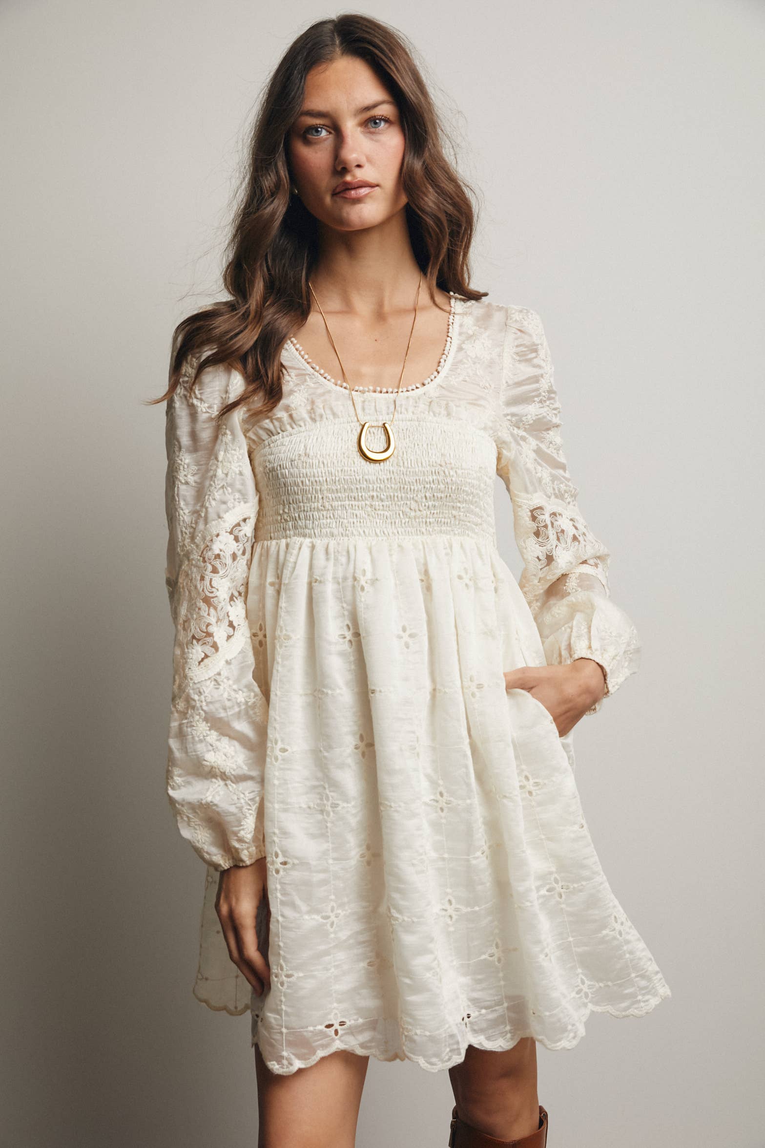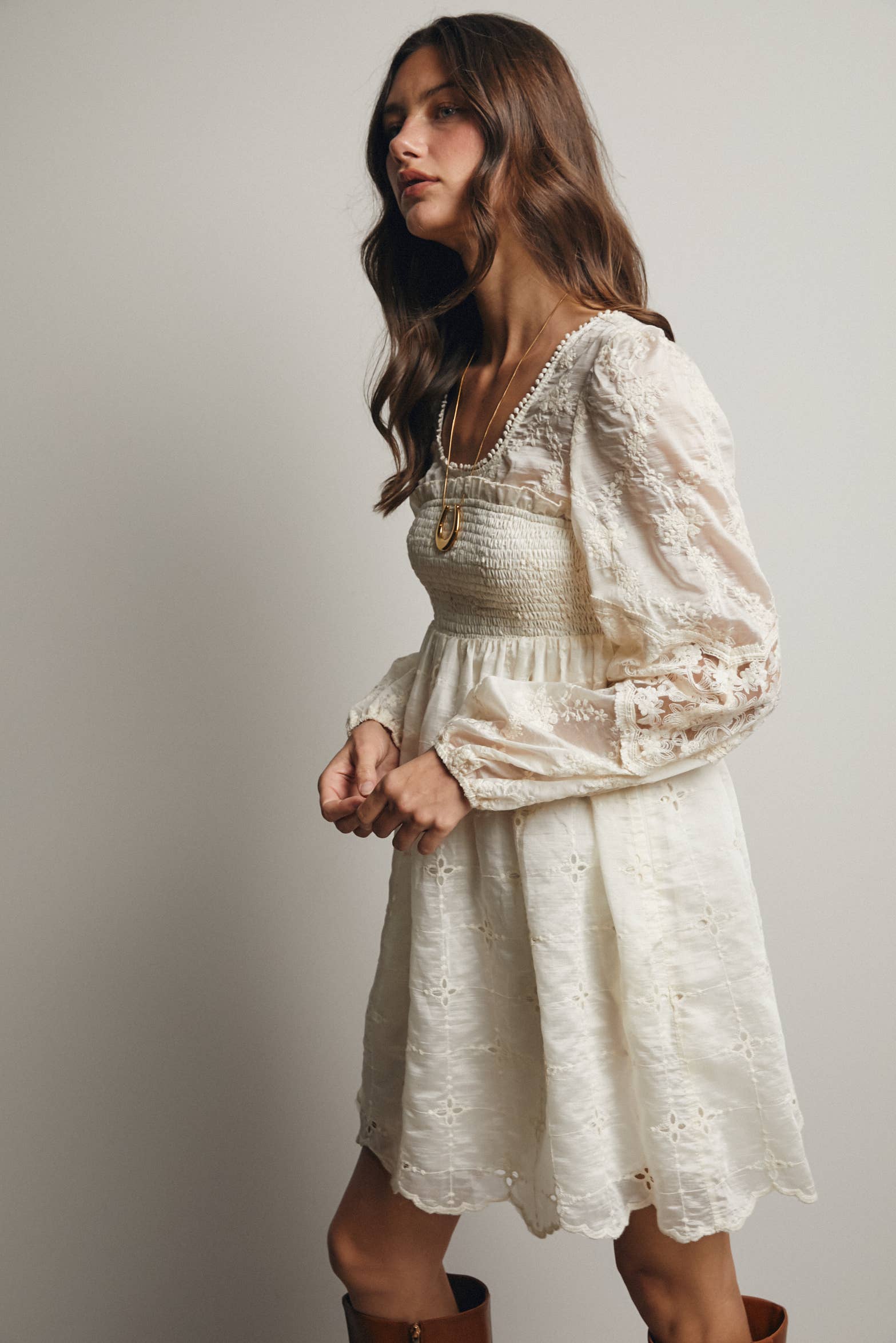 Feminine and timeless, this embroidered lace mini dress blends boho elegance with romantic detailing-perfect for holiday gatherings, seasonal events, or dressed-down with boots for everyday wear.
