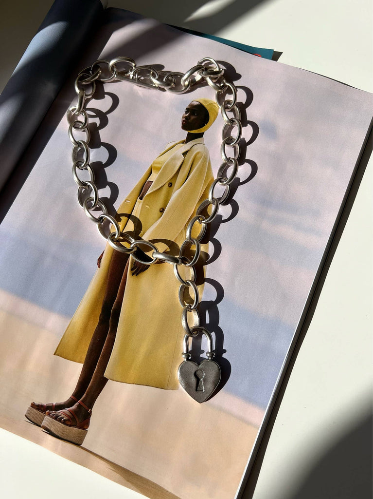 A unique Silver Heart Necklace that is made with a really special chunky chain that is made from steel. The connection is at the front side so you can adjust this necklace at the height that you wish. Find it only at Christinba Christi Store.